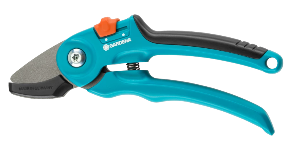 - Le sécateur classique à enclume GARDENA, avec sa lame supérieure à revêtement antiadhésif, est idéal pour couper le bois dur et épais.