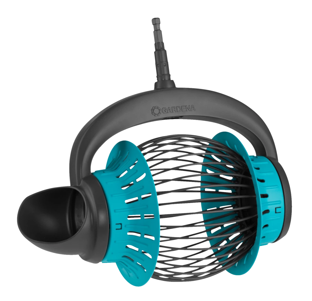 - Le collecteur de fruits combisystem peut être fixé de manière simple et fiable à un manche combisystem GARDENA.