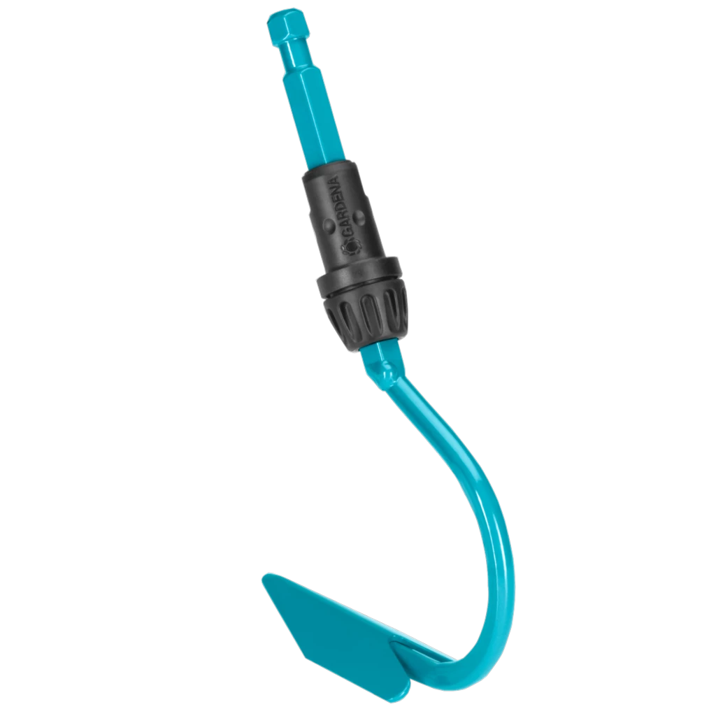 - Le cultivateur combisystem GARDENA est équipé d’une seule dent et est idéal pour briser sans problème les sols compacts.