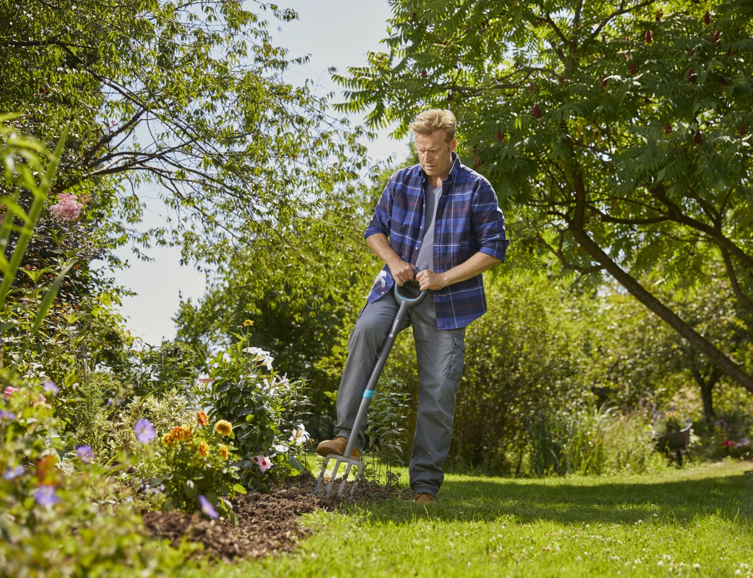 - La fourche à ergots ErgoLine GARDENA est un outil utile pour creuser sans endommager les racines et pour soulever, ameublir et transférer la terre, notamment dans les zones plantées.