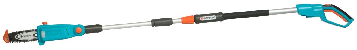 - Enfin, il protège la chaîne lors de la coupe à proximité d’obstacles.Si vous souhaitez transporter ou ranger le sécateur, vous pouvez facilement et sans outils le séparer en deux parties.Le sécateur télescopique GARDENA Accu TCS 20 / 18V P4A solo est livré sans batterie ni chargeur.