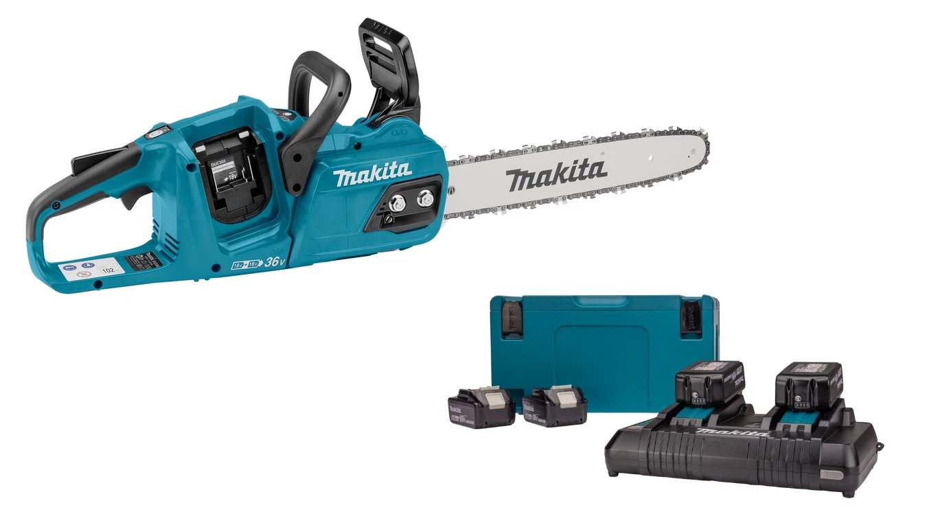 Makita DUC355PG4J LXT 2×18 V Accu Tronçonneuse 35 cm Livrée avec kit de démarrage 198091-4 + 5 ans de garantie revendeur !